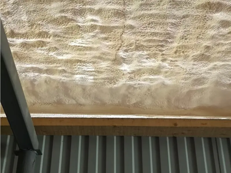 Через два года после теплоизоляции ангара «Химтраст СКН-30 Г2» заказчик сообщил о трещинах на потолке. В статье рассказываем, в чём причина дефекта, как была выполнена гарантийная реставрация и что важно учитывать при работе с жёстким ППУ.